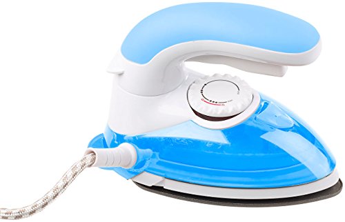 -. Feature : 2in1-Reise-Dampfbügeleisen mit abnehmbarer Dampf-Kleiderbürste: beseitigt Fussel, Haare u.v.m. beim Bügeln • Jeder Stelle einfach erreichen: Griff um 180° schwenkbar, gummiert • Stromversorgung: 110 oder 230 Volt (per Spannungsschalter), Kabellänge: ca. 195 cm / Wahlweise trocken oder mit Dampf bügeln • Leistung: 800 Watt • Material: Edelstahl, Kunststoff / 3 Temperatur-Stufen: Seide und synthetische Stoffe / Wolle / Baumwolle und Leinen • Fassungsvermögen Wassertank: 75 ml • Farbe: weiß, blau / Vertikale Dampf-Funktion: ideal für Gardinen und hängende Kleidungsstücke • Kontroll-Leuchte • Maße: 95 x 118 x 163 mm, Gewicht: 592 g / Reise-Dampfbügeleisen inklusive Messbecher, Dampf-Kleiderbürste, Aufbewahrungs-Tasche und deutscher Anleitung