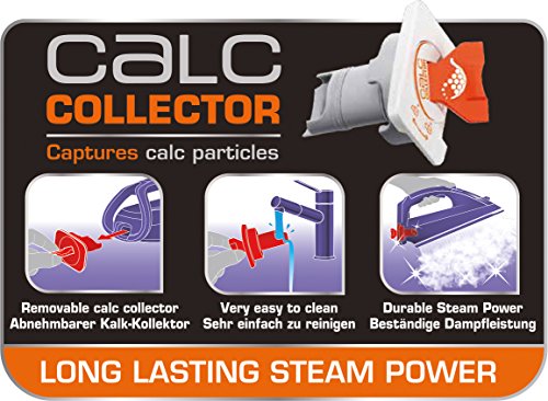 -. Feature : Exklusive selbstreinigende Autoclean Bügelsohle mit Präzisionsbügelspitze, die eine langanhaltende Gleitfähigkeit der Sohle gewährleistet. / Automatische Dampfmengenregulierung 55 g/min, extra-Dampfstoß 230 g/min, Vertikaldampf / Der herausnehmbare und leicht zu reinigende Antikalk-Kollektor sammelt Kalkpartikel und sorgt für langanhaltende Dampfkraft und herausragende Bügelergebnisse / Automatische 3 Phasen Abschaltung: nach 30 Sekunden auf der Sohle stehend oder der Seite liegend, nach 8 Minuten ohne Benutzung / Der integrierte Tropfstopp verhindert, dass Wasser auf die Wäsche tropft