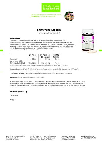 -. Feature : • Colostrum enthält viele biologisch aktive Moleküle wie z.B. Immunglobulin G (IgG) / • Jede Colostrum-Kapsel enthält 400mg Colostrum mit mindestens 18 % Immunglobulin G (IgG) / • Colostrum wird ausschließlich von Kühen aus kontrollierten, deutschen Beständen gewonnen