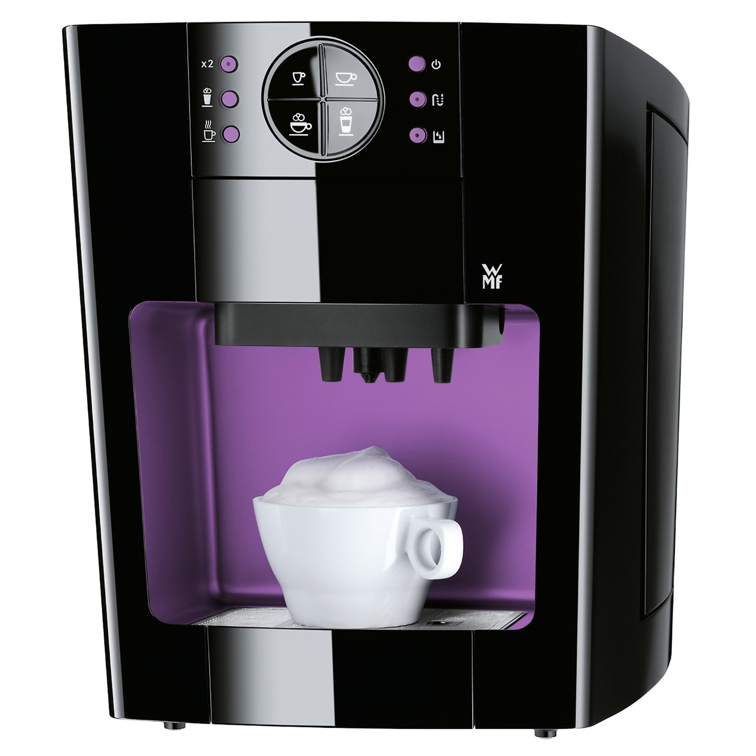 ![]() Kaffeepadmaschine WMF 10Mit der Frühstücksserie WMF 10 erhalten Sie Design Produkte, wie Wasserkocher, Toaster und Kaffeepadmaschine, die Ihnen durch die sorgfältige Verarbeitung und hohe Funktionalität einen guten Start in den Tag ermöglichen. Hochwertige Materialkombination aus hochglänzendem Polycarbonat-Kunststoff und fein gebürstetem Edelstahl in markant dynamischem Design. Anti-Rutsch-Füße für festen Stand und Kabelaufwicklung im Gehäuseboden. Trendthema KaffeeUm die Entdeckung des schwarzen Getränks mit der anregenden Wirkung ranken sich abenteuerliche Geschichten. Der Ursprung der Kaffeebohne liegt in Äthiopien. Als Getränk entdeckt und verbreitet wurde Kaffee im 15. Jahrhundert von den Arabern. Erst im 17. Jahrhundert verbreitete sich Kaffee von der Hafenstadt Venedig aus in Europa. Trotz allerlei Verbote und Widrigkeiten war der Siegeszug des "Türkentrunks" nicht aufzuhalten. Kaffee hat Kultstatus erlangt und ist heute beliebtes Alltagsgetränk, das in aller Welt in vielen Variationen getrunken wird. Diese Vielfalt von Kaffee, Espresso & Co. hat eine ganz eigene Kaffeekultur hervorgebracht. WMF beschäftigt sich seit mehr als 120 Jahren mit der Zubereitung von Kaffee. Ob professionelle Kaffeevollautomaten, Espressomaschinen für den Herd oder trendige Accessoires und Tassen bei WMF finden Sie alles für den perfekten Kaffeegenuss. One-Touch-Funktion Energiesparfunktion »Sleep Modus« Die One-Touch-Funktion liefert per Streicheln eine große Zahl an Getränkespezialitäten: 4 Kaffeespezialitäten, Milchschaum für heiße Schokolade und Heißwasser für Tee. Per Teach-In Programmierung lässt sich die individuelle Einstellung der Tassenfüllmenge festlegen - easy. Energiesparfunktion »Sleep Modus« oder »Automatische Abschaltung« verringern den Energieverbrauch auf ein Minimum. Patentiertes Crema System WMF milk connector Was ist Kaffee ohne Crema? Das WMF-patentierte Crema System liefert eine perfekte Crema für kleine und große Kaffeetassen. Dank des WMF milk connector besitzt die Kaffeepadmaschine WMF 10 eine einfache und saubere Milchlösung. Und dazu kommt noch das WMF easy clean für eine einfache Reinigung des Milchsystems. Doppeltassen- und Vorbrühfunktion Großer Wassertank mit 1,6 Liter Sorgen wegen Kalk im Wasser - das automatisches Entkalkungsprogramm kümmert sich darum. Die Doppeltassenfunktion der Padhalter ist variabel einsetzbar für 1 oder 2 Kaffeepads mehr oder weniger Kaffee, stark oder leicht. Das Aroma wird durch die automatische Vorbrühfunktion vollmundig und unvergleichlich. Und der große Wassertank mit 1,6 Liter ist einfach herausnehm- und befüllbar. WMF - Kaffeegenuss seit ueber 125 Jahren Der Vollautomat unter den Padmaschinen Die WMF 10 black-purple ist der Vollautomat unter den Padmaschinen, doch sie kann noch mehr: der separater Heißwasserauslauf ermöglicht die Zubereitung von Tee. Und auch für große Gläser ist vorgesorgt: die abnehmbare Auffangschale bietet die Möglichkeit große Latte Macchiato Gläser. Technische Informationen: