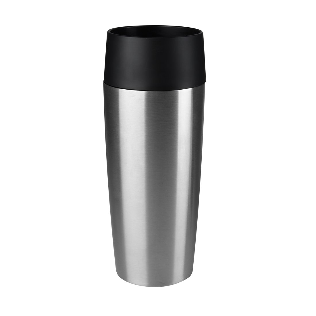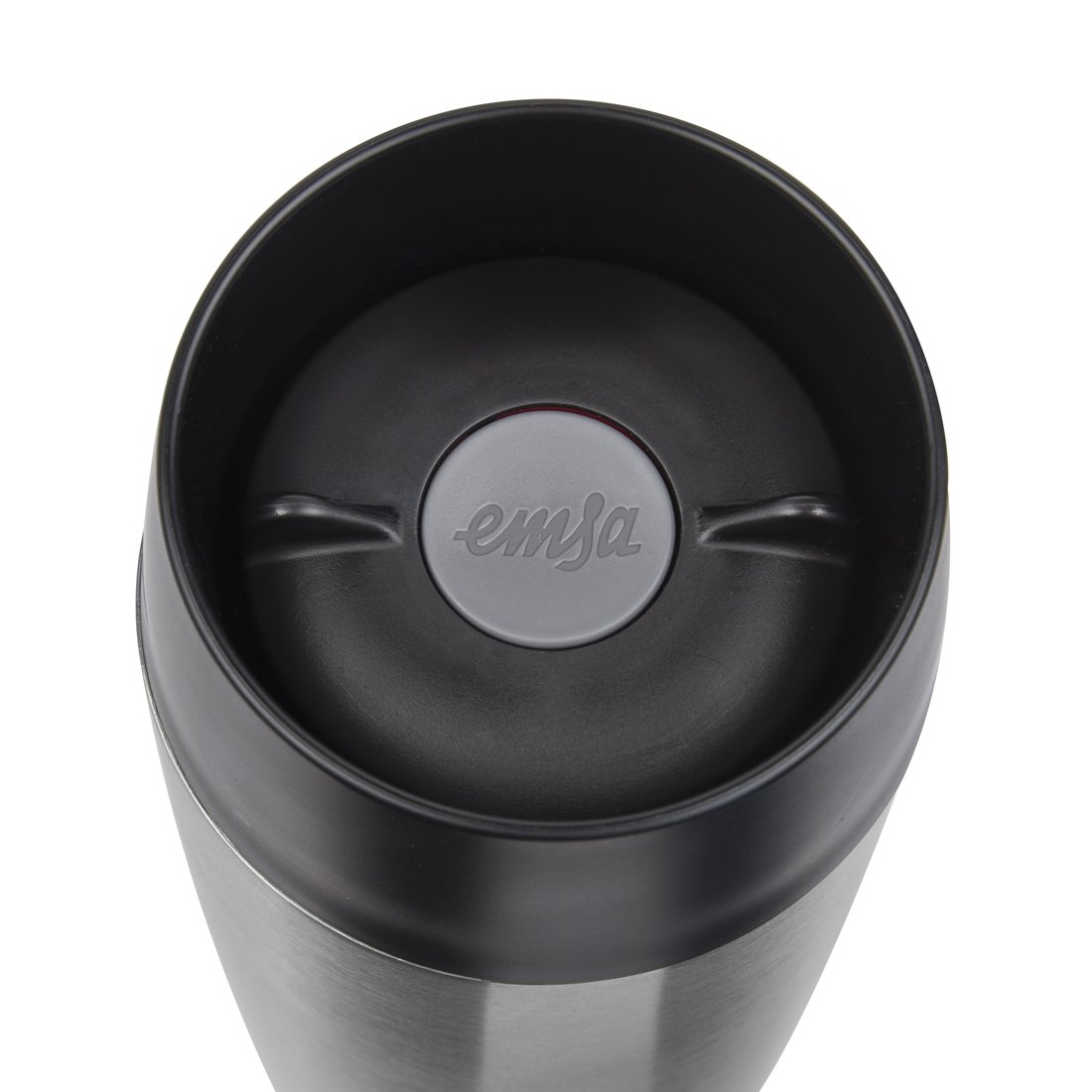 • Lieferumfang: 1 Emsa Isolierbecher Travel Mug Schwarz mit Silikon Manschette, Volumen: 360 ml, Material: 18/10 Edelstahl, PP