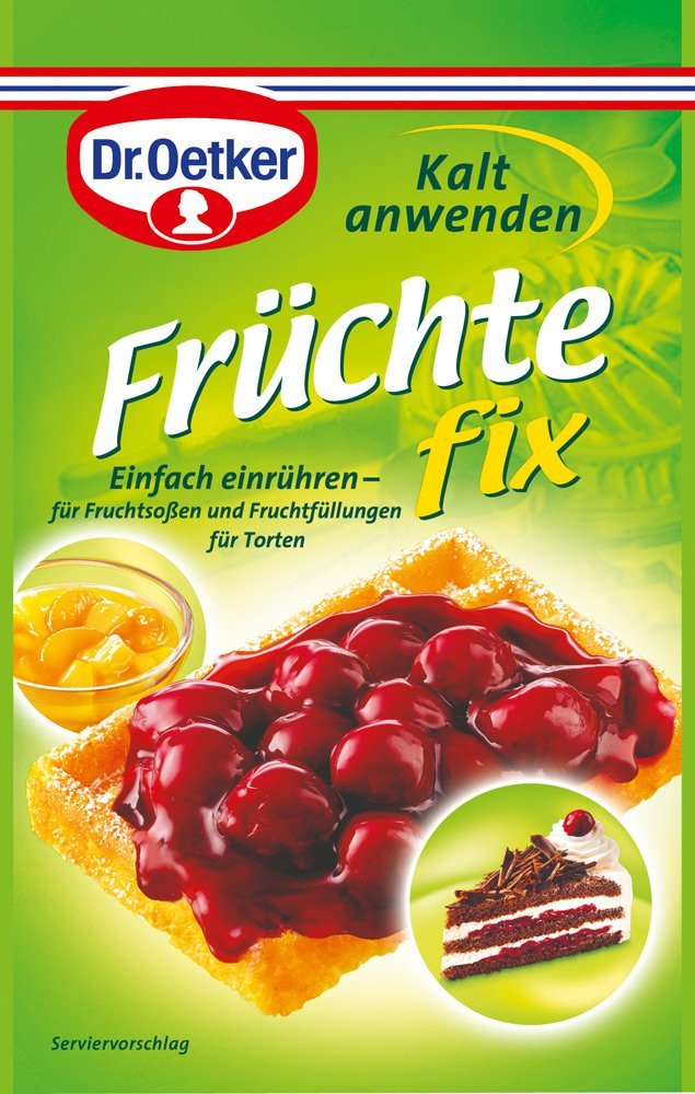 1 Beutel Früchte fix ist ausreichend für z.B. 1 Glas Sauerkirschen (Abtropfgew. 350 g) oder 1 Dose Pirsiche (Abtrofgew. 480 g).