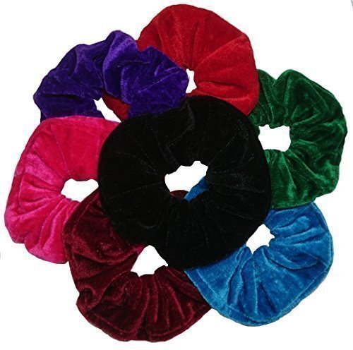 -. Feature : Set mit 7 großen Haargummis aus weichem Samtstoff mit Elastikband / Normalgröße: 10-12 cm / Komplett gedehnt: 20-22 cm / Marke: Aadya Trading Ltd / Enthaltene Farben: Rot, Schwarz, Grün, Kastanienbraun, Pink, Himmelblau und Violett; weitere Farben von diesem Anbieter erhältlich
